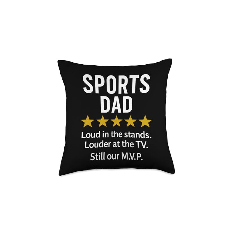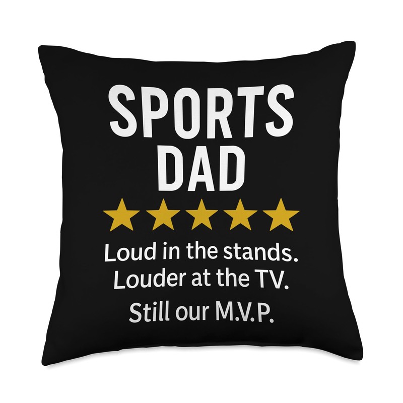 - This humorous and heartfelt design features the bold title "SPORTS DAD" with five gold stars and the witty quote: "Loud in the stands. Louder at the TV. Still our M.V.P." It celebrates every passionate, game-day-shouting dad