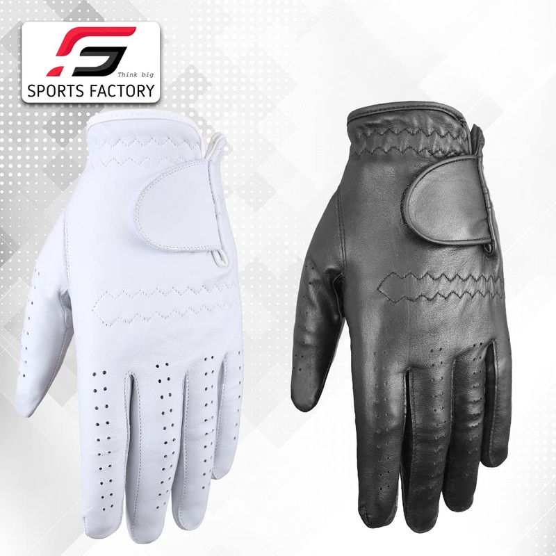 Sports Factory -2 Piece Single Left Hand Golf Unisex Premium Leather Golf Glove - Color Black & White (Black & White, XX-Large)