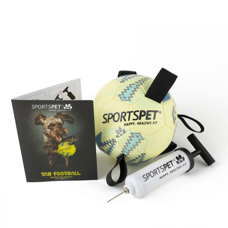 SPORTSPET Dog Football with Grab Tabs, Durable Interactive Dog Balls, Floating Water Dog Toy for Indoor & Outdoor Play (Size 2 Yellow Blue)