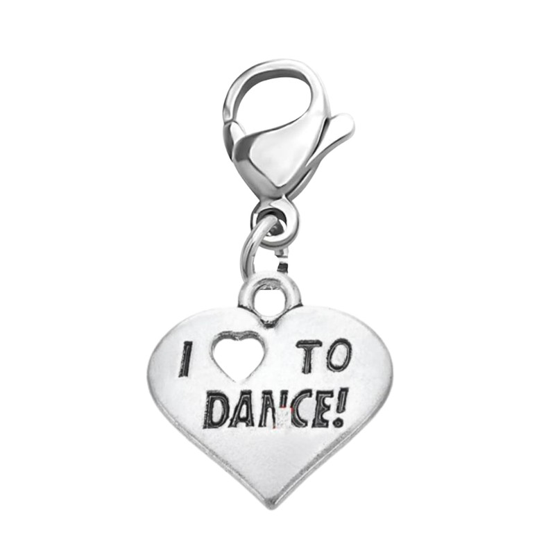Sportybella Dance Clip-On Charm with Love Dance Card – Heart-Shaped 'I Love to Dance' Pendant for Bracelets, Backpacks, Jackets, and Bags – Silver-Tone with Lobster Clasp