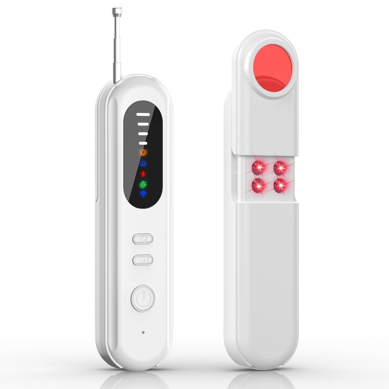 - (High Frequency Detection & 2-Way Alarm Mode) The theft detector adopts an upgraded ultra-sensitive chip, with 3 adjustable levels of high sensitivity (6 adjustable LED laser light), and can perform a fast scan of up to 2000 times per second to quickly identify the signal source. This is the ideal choice for any space where privacy is most important. The theft camera detector also allows you to select 2-way alarm mode to switch between beep and vibration modes