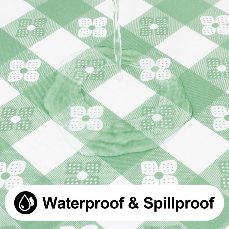 - [Waterproof and Stain Proof] High-quality vinyl tablecloth surface acts as an impermeable barrier to water, preventing any leaks and ensuring your table stays shielded from spills and stains.