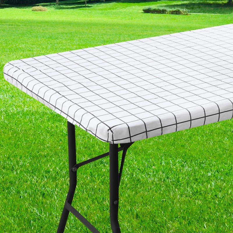 - [Elastic Fit & Non-Slip] The table cloth with elastic edge design allows the cover to fit ideally on the rectangle folding table. The fitted tablecloth will not move, whether it is accidentally pulled or a gust of wind blows in to interfere with your pleasant dinner.