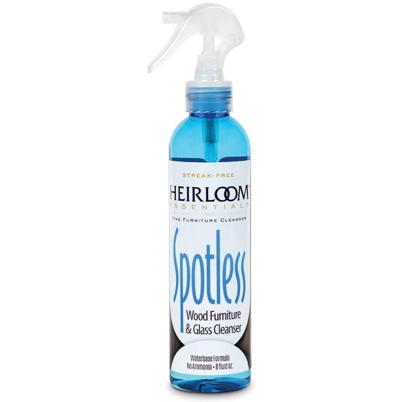 ✿ Streak Free water-based cleanser removes fingerprints, food residue, greasy grime and much more from multiple surfaces including varnished wood furniture, glass, vinyl, and mirrors. Prevents splotching on Cherry wood, Maple wood, and Walnut wood. By simply maintaining the luster of your furniture, you are ensuring it's heirloom quality to last for generations to come. Heirloom Essentials Spotless Cleansing Pretreatment Furniture Polish contains NO silicone and NO wax. Spotless Cleansing Pretreatment is a revolutionary water-based furniture cleanser.