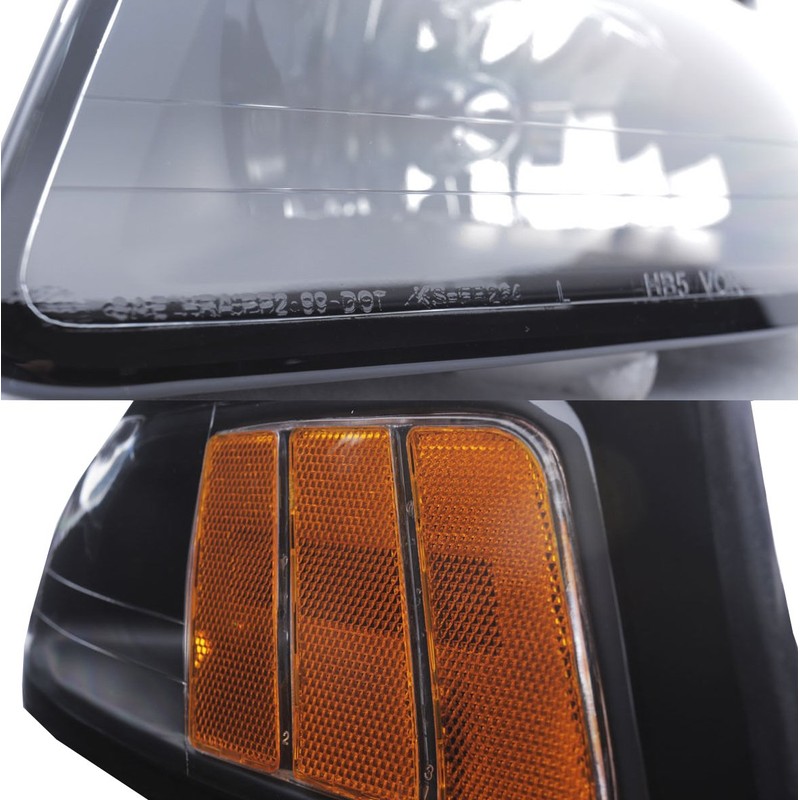 SPPC Crystal Headlights Black Assembly Set For Ford Mustang - (Pair) Driver Left and Passenger Right Side Replacement Headlamp