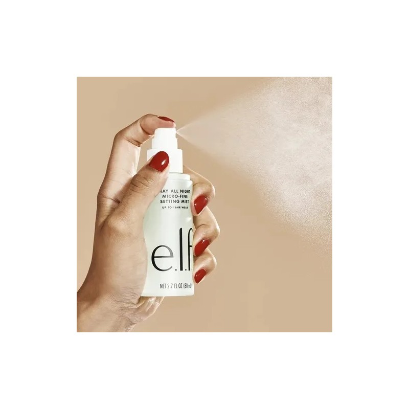 El Spray Fijador Elf De Maquillaje Micro Fino Hidratante 80ml asegura tu look hasta 16 horas, manteniendo tu maquillaje impecable de la mañana a la noche.