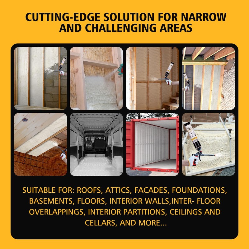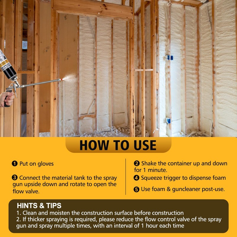 - HIGH-EFFICIENCY INSULATION: With an impressive R-Value of 5.66 per inch and a low thermal insulation value of 0.025 W/(m.K), spray foam insulation not only provides exceptional insulation, but also preventing thermal bridging (heat bypass) and ensuring a comfortable environment.