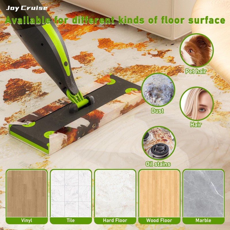 - 【Safe for All Floor Types】 Gentle on floors,Effective on dirt.This versatile deep-cleaning spray mop is safe for hardwood (including all unwaxed, unoiled, and polyurethane-finished wood), tile, laminate, and vinyl surfaces. It removes grease, grime, and food residue while safeguarding your floors from damage.
