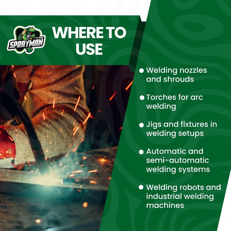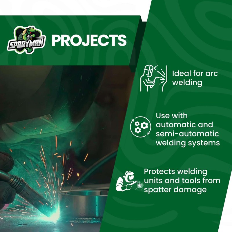 - Heavy-Duty, Industrial Anti-Spatter Protection: Sprayman’s Anti-Spatter Welding Spray prevents spatter adhesion on Arc, MIG abd TIG Welding Equipment, including nozzles, torches, and tools.