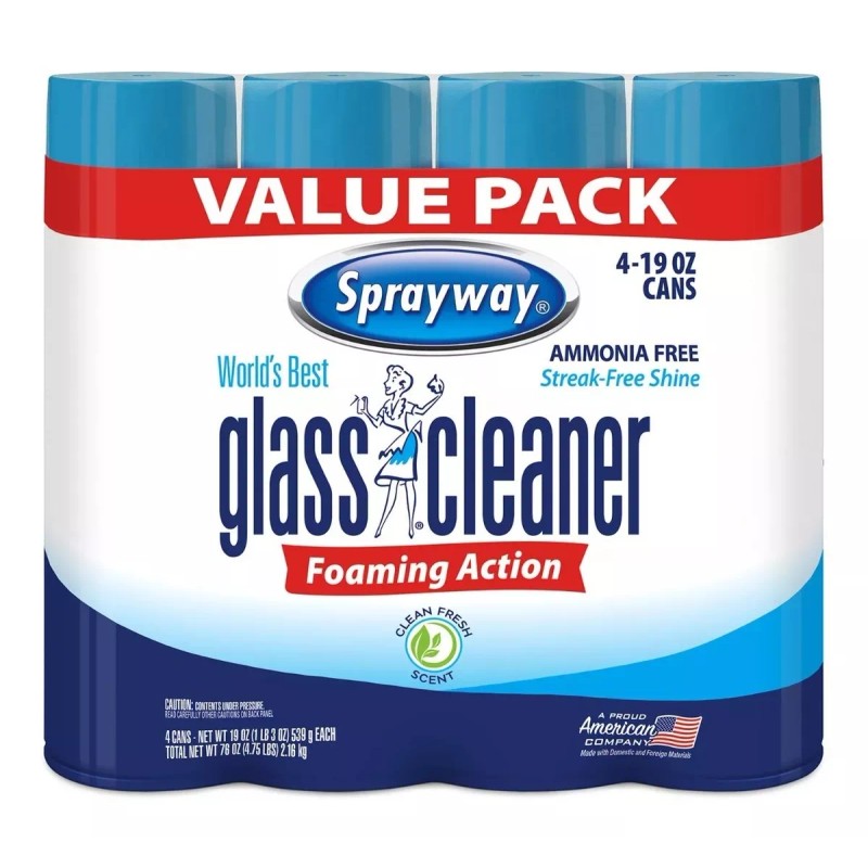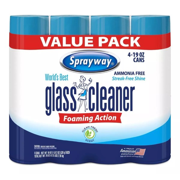 El limpiador de vidrios Sprayway® (19oz, 4pk.) Ofrece la mejor acción de limpieza para todo tipo de superficies de vidrio. Este paquete de limpiador en aerosol viene con cuatro latas de limpiador, por lo que puede dejar una en casa, una en la oficina y otra en el garaje. Estos 19 oz. las latas tienen el tamaño perfecto para un fácil almacenamiento y con frecuencia superan a los pulverizadores de gatillo más grandes para ofrecer una opción de limpiador que sea amigable financieramente