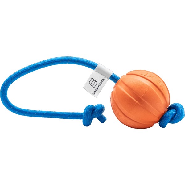 Sprenger Play Ball on Rope - Ball, Water Fun, Fetch Toy for Dogs, Orange, Diameter 7 cm