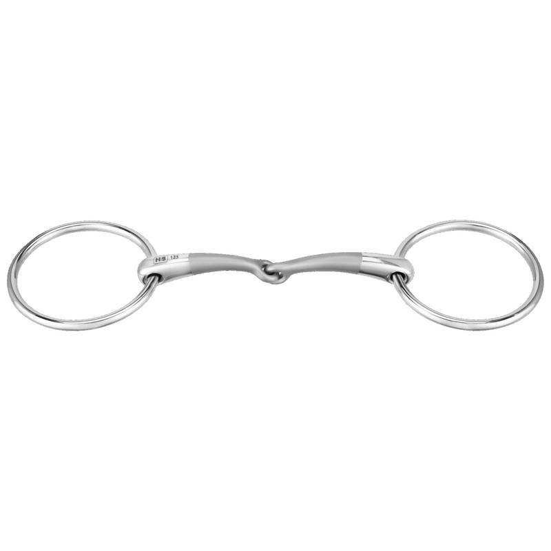 The ergonomically formed mouthpiece allows a rapid and balanced effect on the tongue. In comparison to conventional single jointed bits this mouthpiece give even pressure on the entire tongue area and represent a better contact between horse and rider. The bit is made of stainless steel. Ring-diameter: 70mm, thickness: 14mm, sizes: 11.5cm (4.1/2"), 12.5cm (5"), 13.5cm (5.1/4"), 14.5cm (5.3/4"), 15.5cm (6 1/8"). Sprenger item no. 40462. Text by CALEVO.