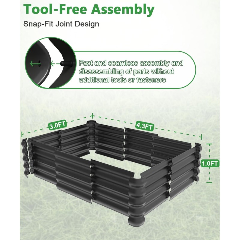 - 【Unique Tool-Free Assembly】Our Snap-Fit outdoor planter are designed for effortless assembly. No tools required! Simply snap the garden box sheets together to create a sturdy and stylish garden border. Whether you're dividing your garden, protecting your plants, or enhancing your patio's aesthetic, these above ground garden bed make it easy to achieve your vision in minutes. Perfect for busy planters who want a quick and hassle-free solution to garden organization