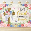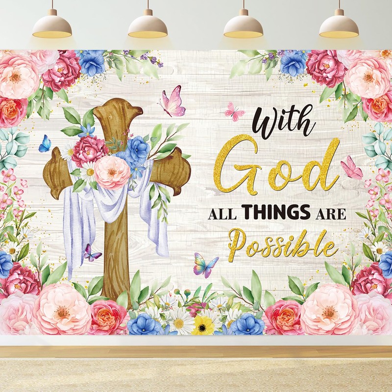 Spring Banner Decorations Spring Easter Photography Backdrop 10x8FT Butterfly Flowers Jesus Cross Background for Christian Holiday Photo Props
