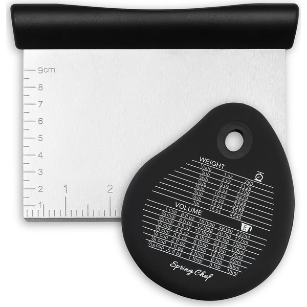 Spring Chef Dough Bench Scraper for Baking with Markings - Stainless Steel Kitchen Dough Cutter Tool with Bowl Pastry Scraper for Pizza, Bread, Pastries - Bench Knife - Dishwasher Safe - Black