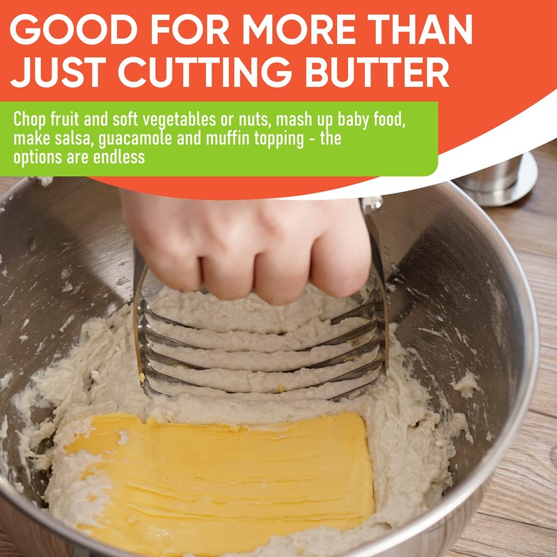 - Good For More Than Just Cutting Butter - Chop fruit and soft vegetables or nuts, mash up baby food, make salsa, guacamole, chopped eggs for egg salad, muffin topping and much more. It's also Dishwasher Safe.