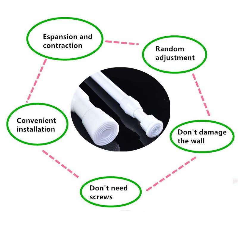 - Premium material : This Extendable tension rods are made of sturdy high-carbon steel, stainless steel SK8 strong rough spring, and electrostatic spraying technology for the surface, rust-proof, smooth, durable.
