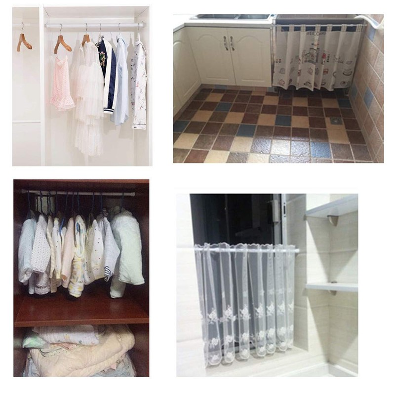 - Wide usage Esfiled: Tensions rod can be used as refrigerator bars, closet rod, coat hanger, shoe rack, bookcase rod, cabinet rod, cupboard rod, pantry rod, kitchen window tier valance covering bathroom curtain rod, window rod. Used in wardrobe, RV cupboard, DIY projects, and for hanging curtains, shower curtain, etc.