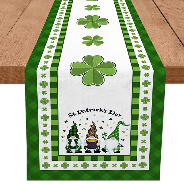 Spring Decor - Irish Spring Table Runner, St Patrick's Day Decorations for Kitchen – Classic St Patrick's Day Table Runner with Gnome and Clover Design