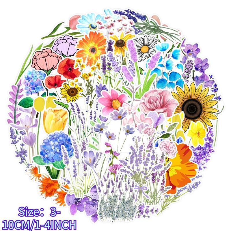 Spring Flower Sticker, 50pcs Floral Pattern DIY Sticker, Decorative Stickers for Mobile Cases Laptop, DIY Spring Decor 2024