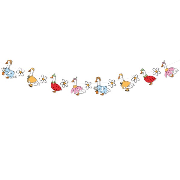- DESIGN ELEMENTS: Charming banner featuring adorable geese in various outfits, interspersed with delicate daisy flowers for a whimsical spring theme