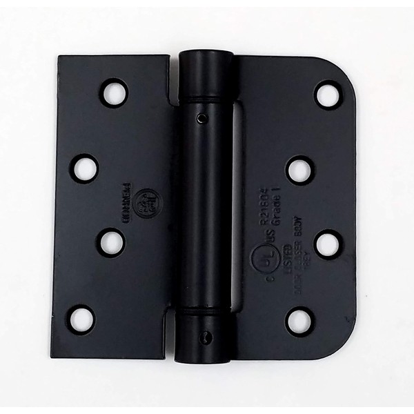 Spring Hinges 4 Inch with 5/8 Inch Square Corner, Self Closing Adjustable, Flat Black - 4 Pack for 2 Doors