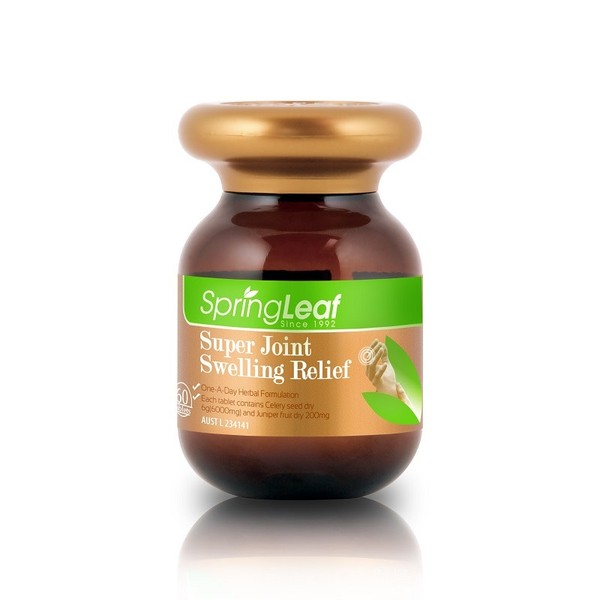 Spring Leaf Super Joint Swelling Relief is a premium herbal formula in a convenient one-a-day vegetarian tablet.