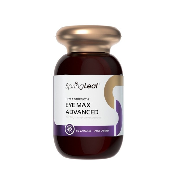 SpringLeaf Ultra Strength Eye Max Advanced, with its brand-new packaging, offers a premium eye health formula enriched with natural herbal extracts such as Bilberry, Grape Seed, and Eyebright. lt also includes essential nutrients like Lutein, Zeaxanthin, Vitamin C, and Beta-Carotene.