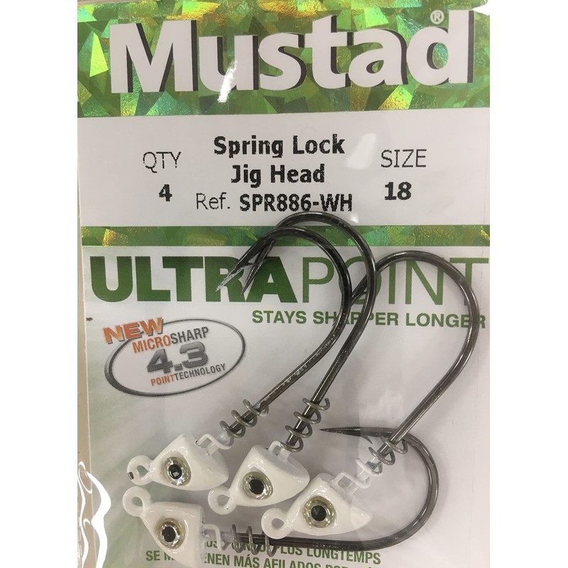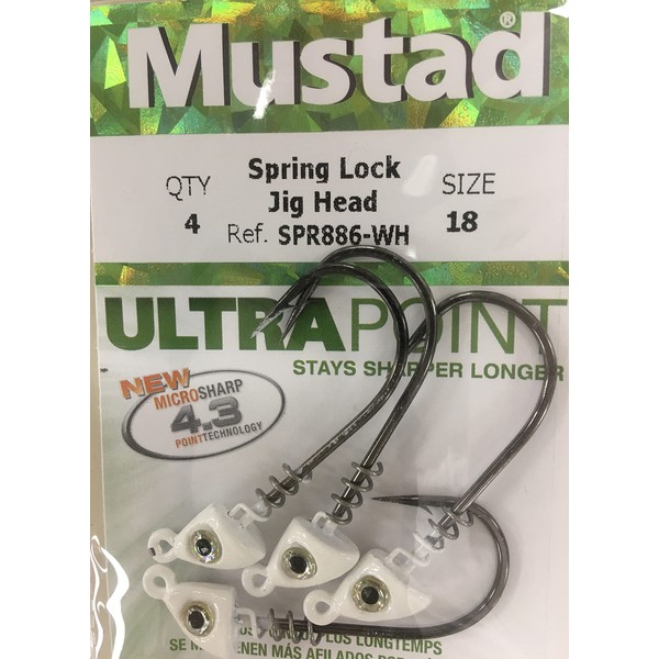 - Spring Lock Jig Head, 1/8OZ, 3/0 Hook, White 3/0