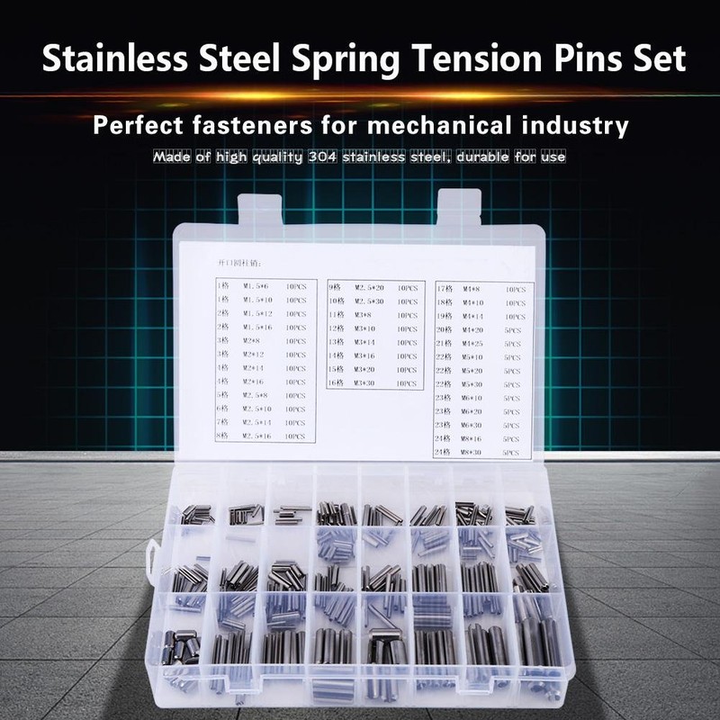 Spring Pin in Stainless Steel Split Spring Dowel Tension Roll Pins Set M1.5 M2 M2.5 M3 M4 M5 M6 M8 with Box