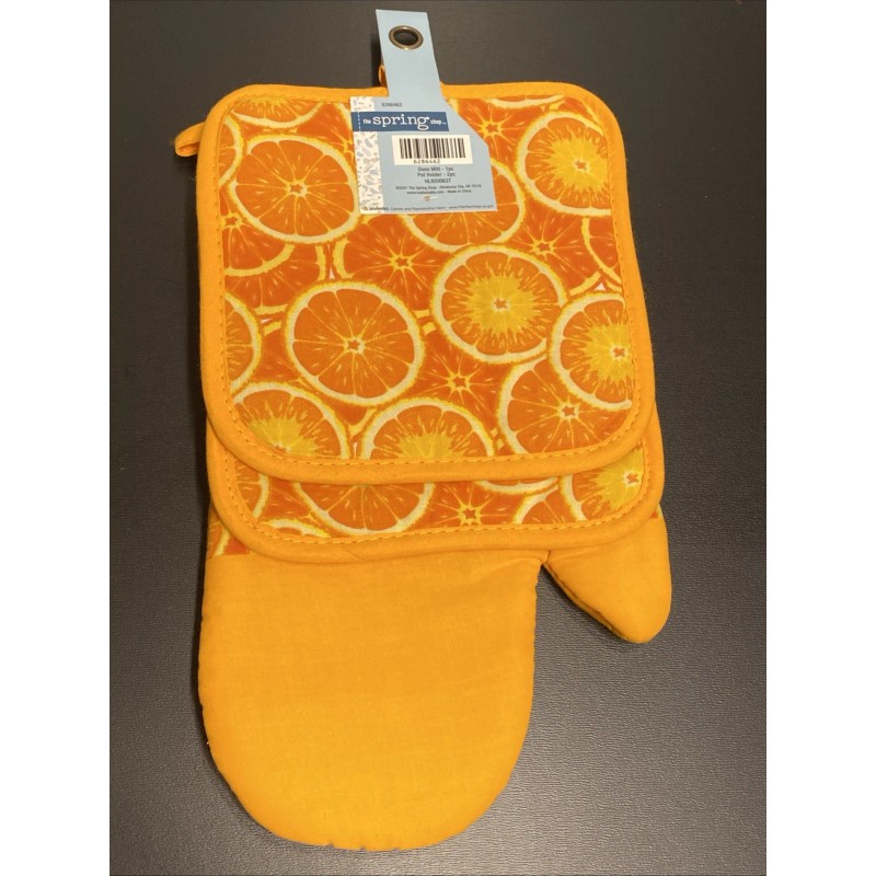 Spring Shop LOT of 3 Kitchen Pot Holders Oven Mitt Mitten Citrus Oranges Fun Fruit Set NEW