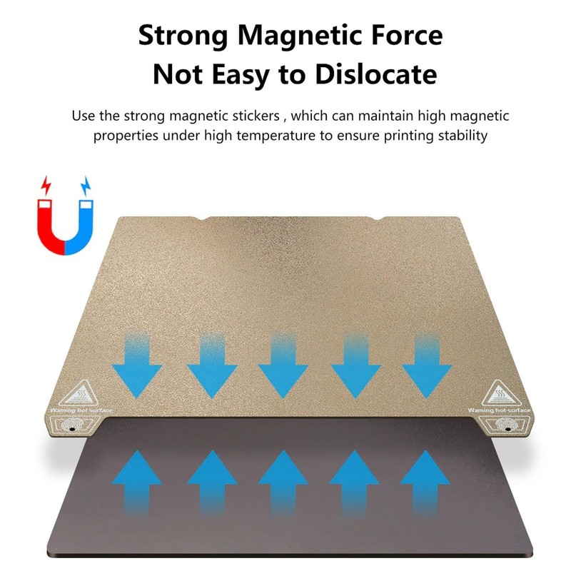 - High Temperature : The PEI bed of this print bed can withstand 260℃ without deformation, and the PEO can work under 80℃ high temperature.