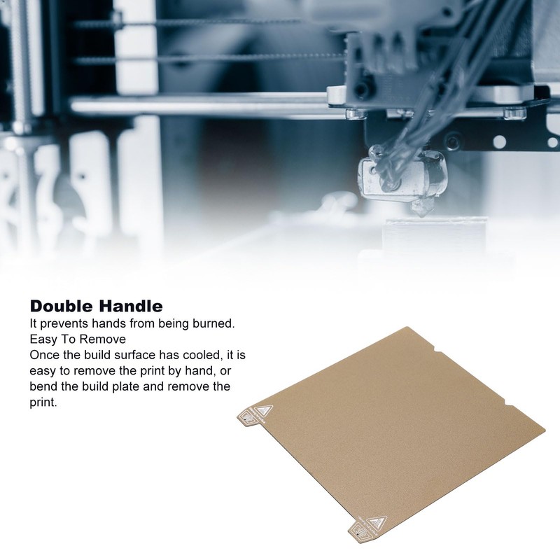 - Double Handle Design: This print bed comes with two handles for pulling it out after printing without burning your hands, which is very convenient.