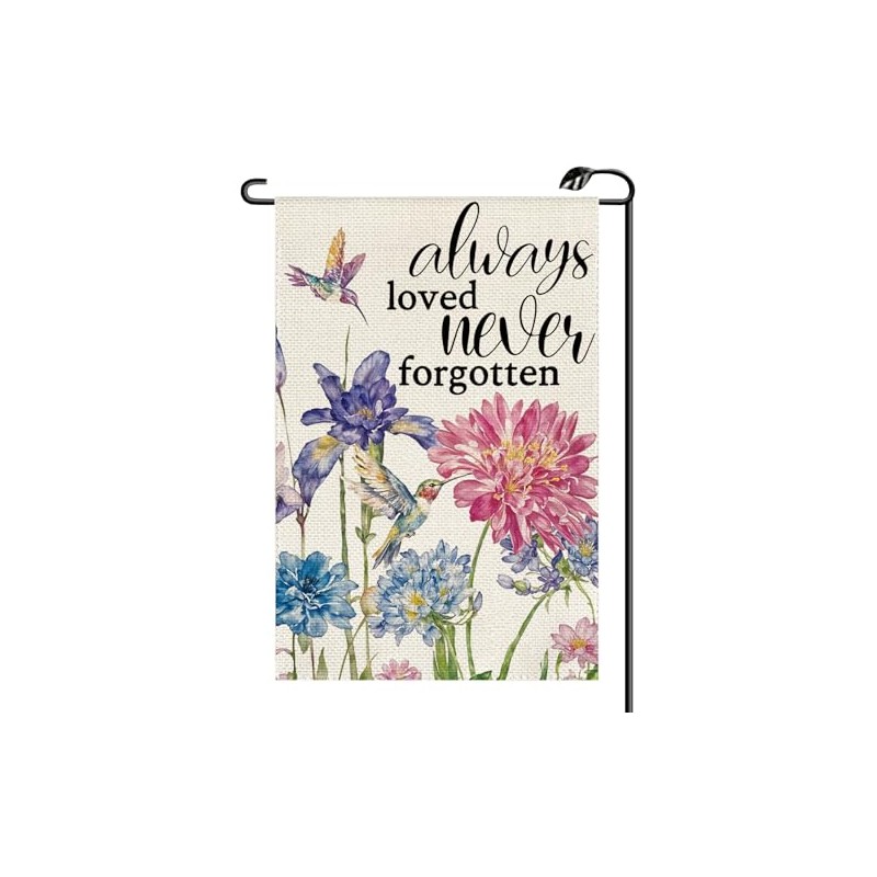 Spring Summer Always Loved Never Forgotten Memorial Garden Flag 12x18 Inch Vertical Double Sided Hummingbird Small Flags Farmhouse Outside Decoration For Yard (ONLY FLAG) CJ36