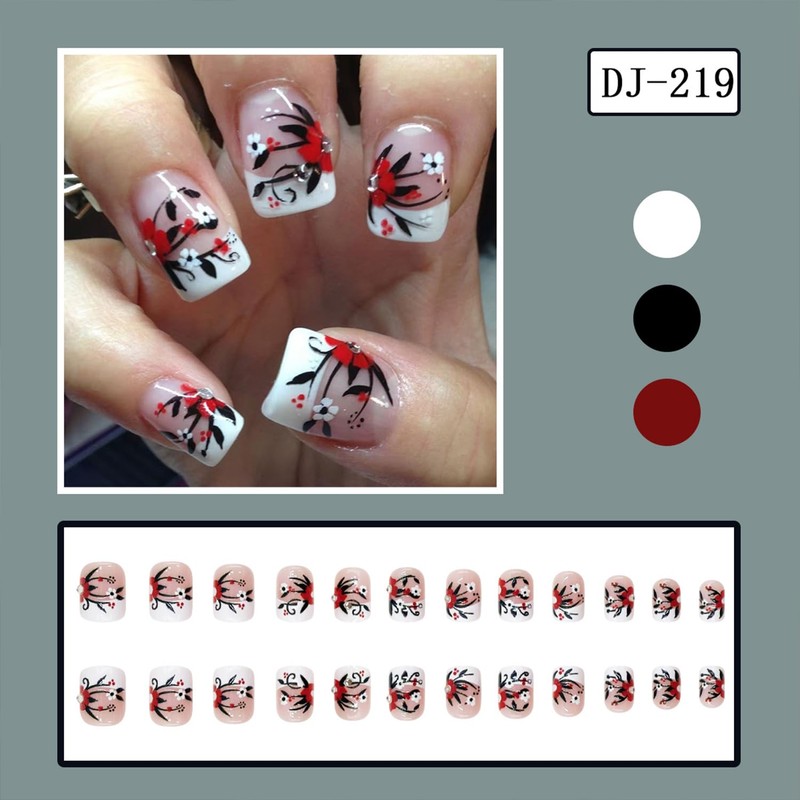 - Service Guarantee: If you have any doubts about this red white flower press on nails, please feel free to reach us by email. We will respond to you within 12 hours and strive our best to solve your problem