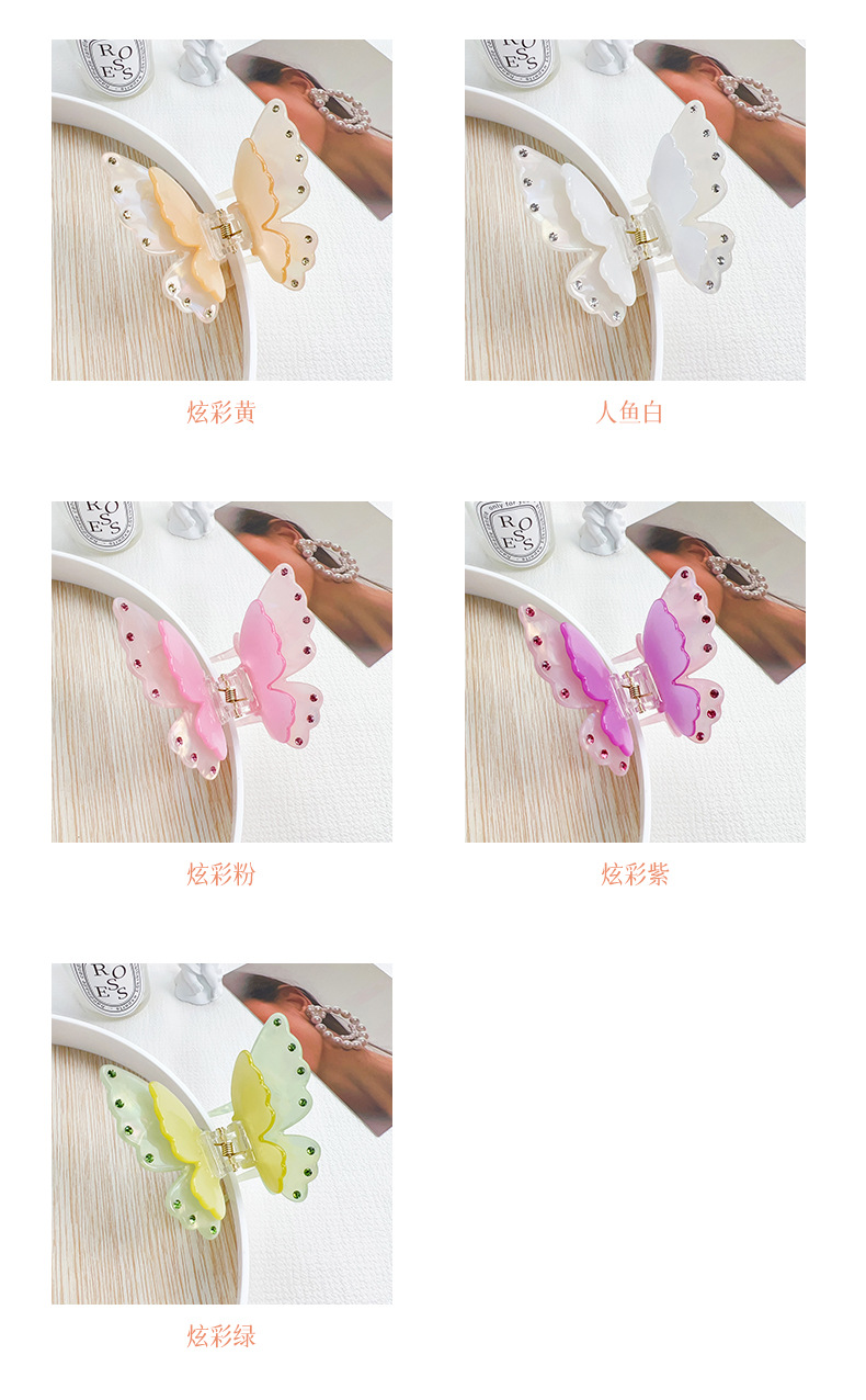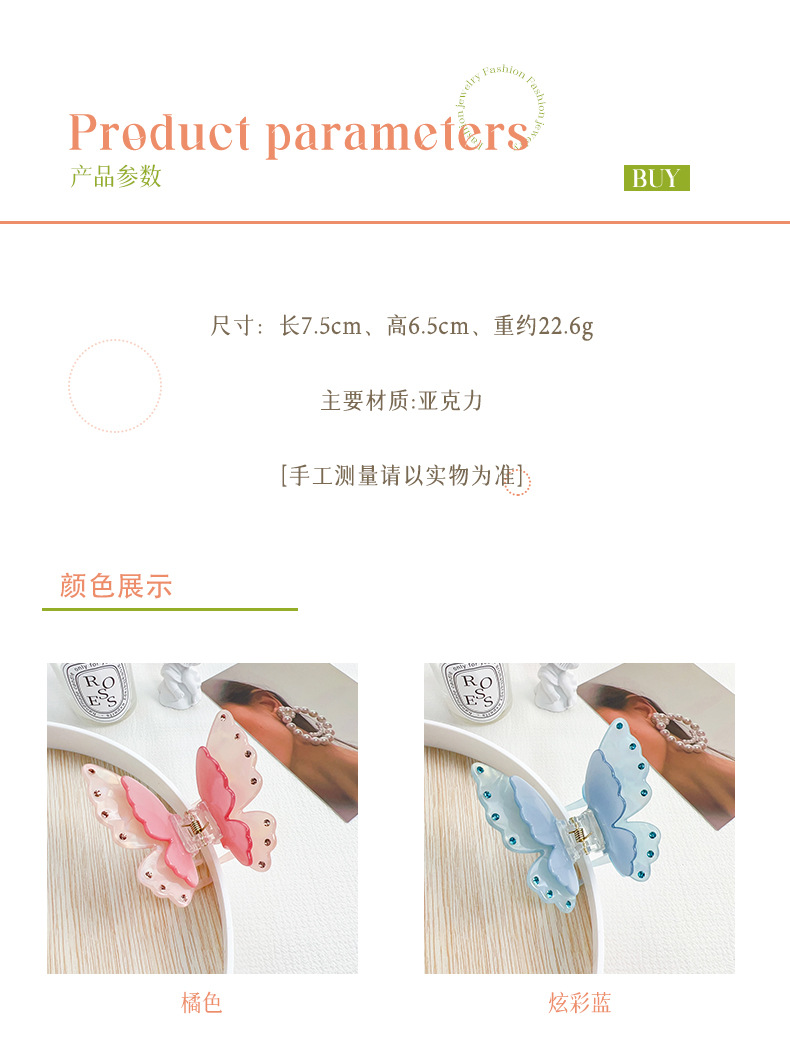 Spring/Summer New Acrylic Double-Layer Luxurious Butterfly Sweet Hair Clip - Small & Refreshing Orange 7.5CM 20ea