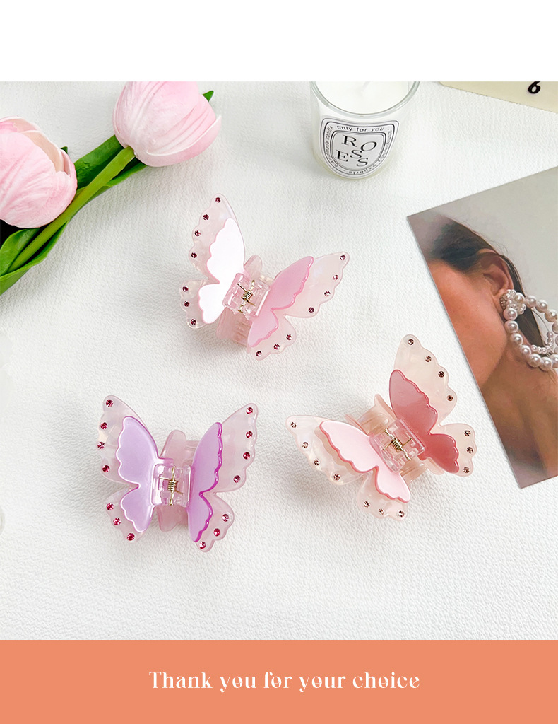 ✨ Featuring a luxurious double-layer acrylic butterfly, this sweet accessory captures the light beautifully, making your look effortlessly elegant.