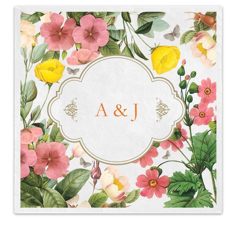 - Design: One-of-a-kind bright floral design with 1 line of personalization in a font and color of your choice. Printed on high quality uncoined white napkins.