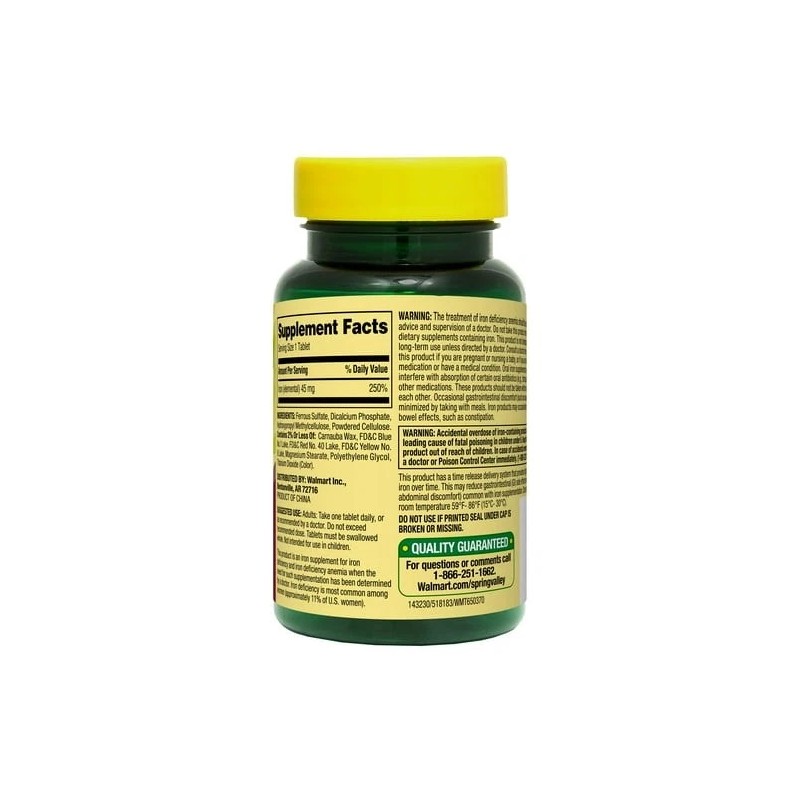 - Spring Valley Slow Release Iron General Wellness Dietary Supplement Tablets, 45 mg, 30 Count