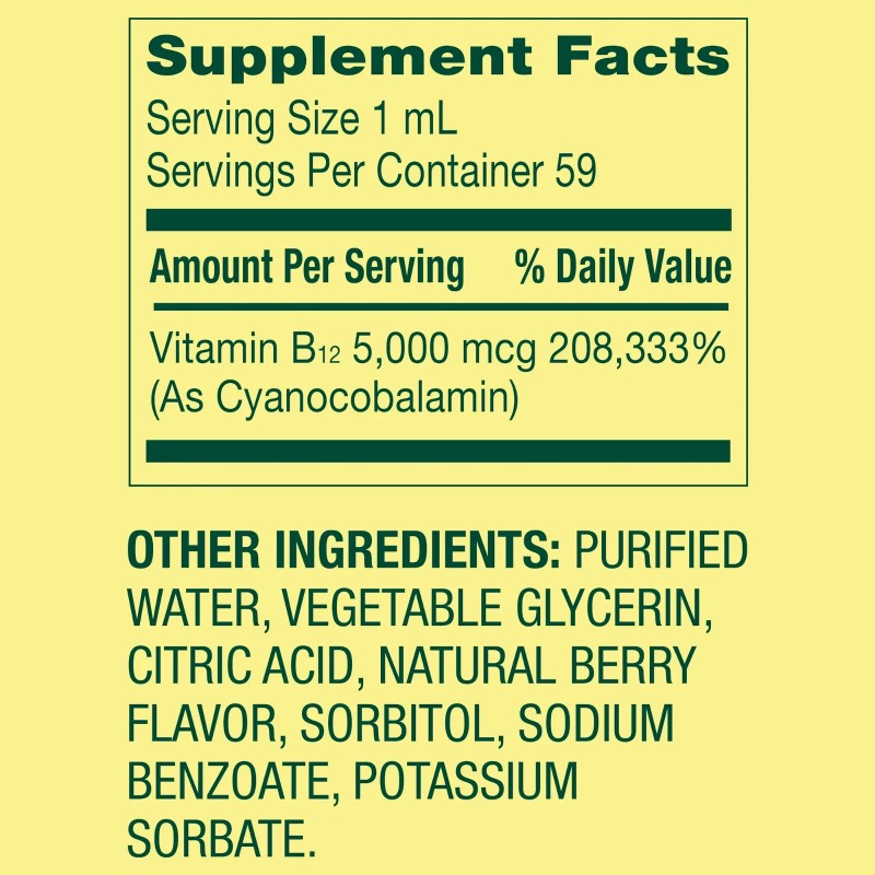 - Spring Valley Extra Strength Vitamin B12 Fast Acting Liquid for Metabolism Support, 5000 mcg, Berry, 2 fl oz