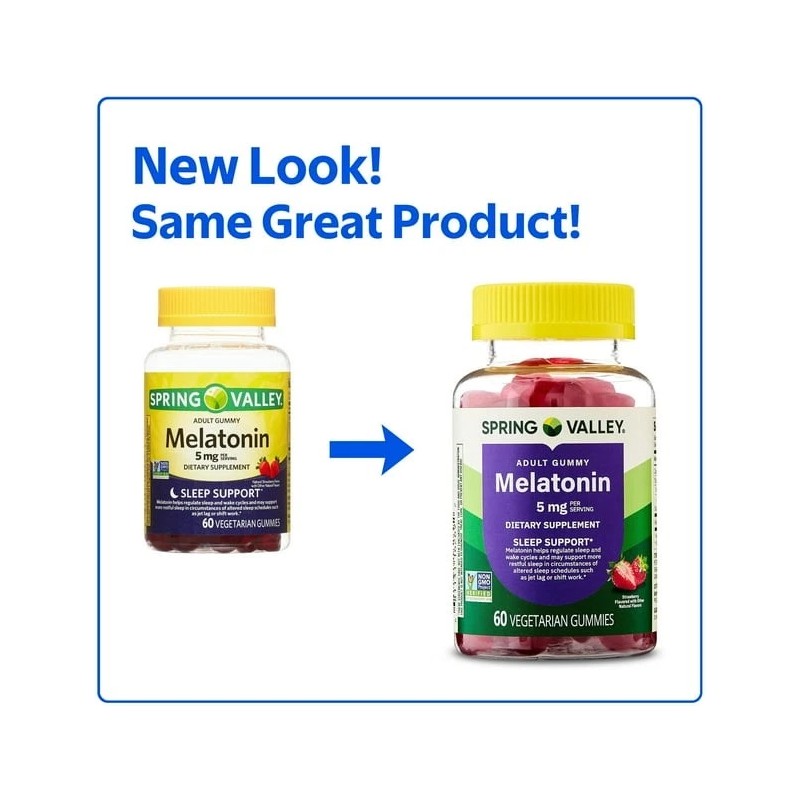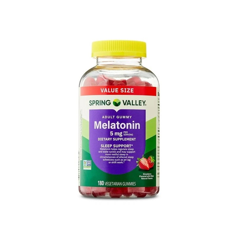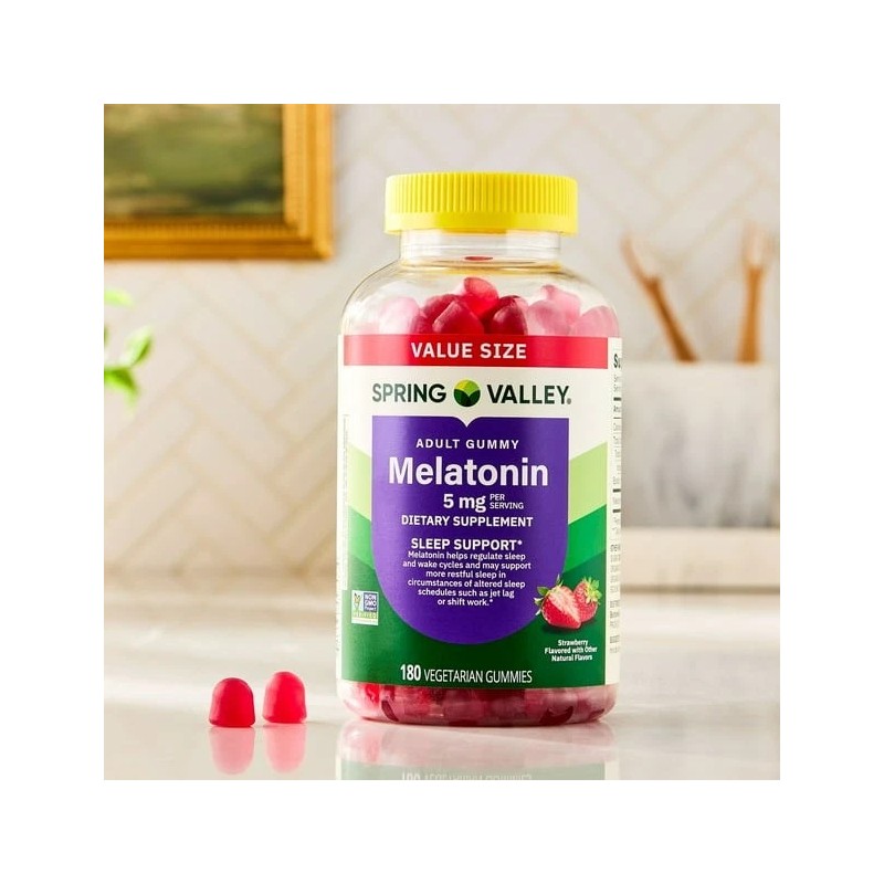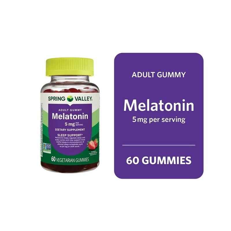 - Spring Valley Melatonin Adult Pectin-Based Gummies, 5 mg, 60 count 5 mg of Melatonin per serving