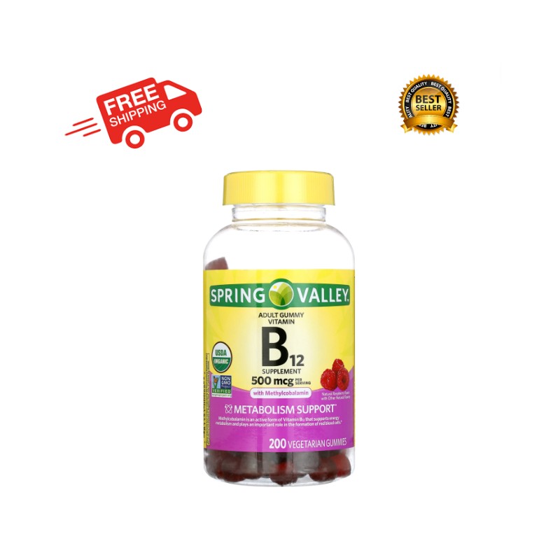 Spring Valley Non GMO Vitamin B12 Vegetarian Gummies, Raspberry, 500 mcg, 200 Count Spring Valley Organic Vegetarian Vitamin B12 Gummies are the simplest, best-tasting way to support energy metabolism Our delicious and easy-to-chew gummies make taking your daily Vitamin B12 a joy With a commitment to using only the highest quality ingredients Spring Valley understands living a healthy, balanced lifestyle is the key to being your best self Easy to take| Brand: | Spring Valley |
