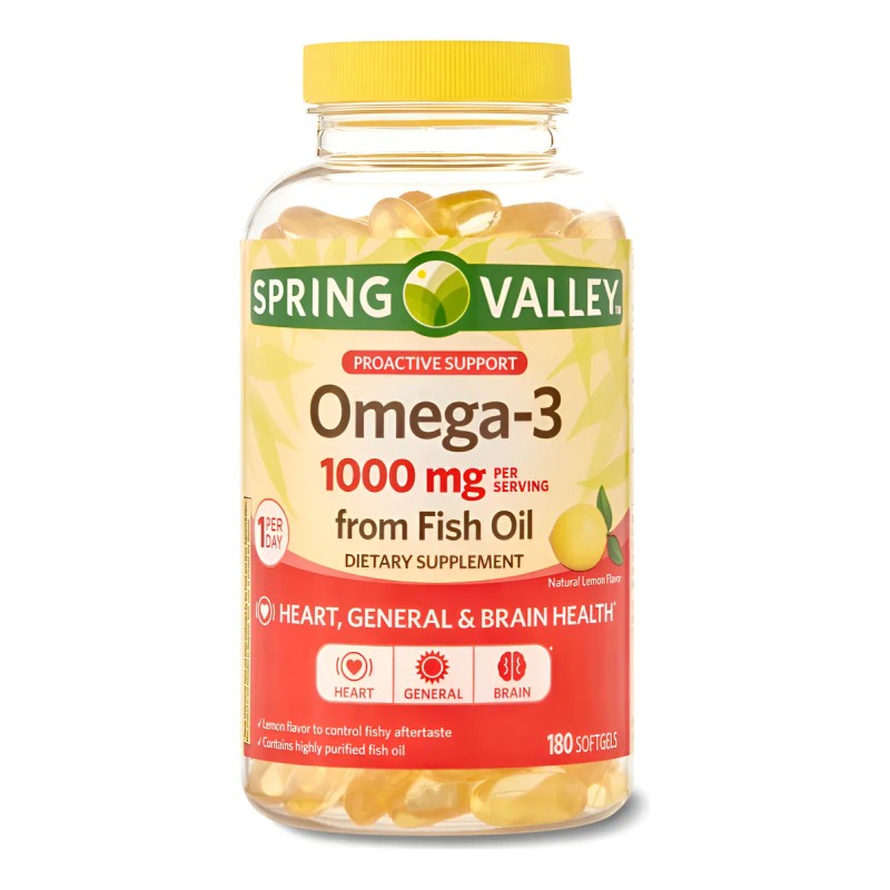 Spring Valley Omega 3 1000mg Con 180 Softgels Fish Oil Limón