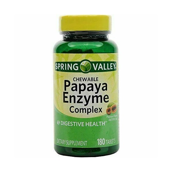 Spring Valley Papaya Enzyme Complex Chewable Tablets Dietary Supplement is formulated to help support your digestive health.* Papaya fruit contains a natural enzyme that may play a role in the breakdown of food in the body, helping aid digestion.* These chewable tablets feature a delicious papaya flavor and are easy to take. This formula contains no gluten, salt, or lactose, and is suitable for a vegetarian diet. You can rest assured that Spring Valley Papaya Enzyme Complex Chewable Tablets Dietary Supplement is produced with strict quality guidelines