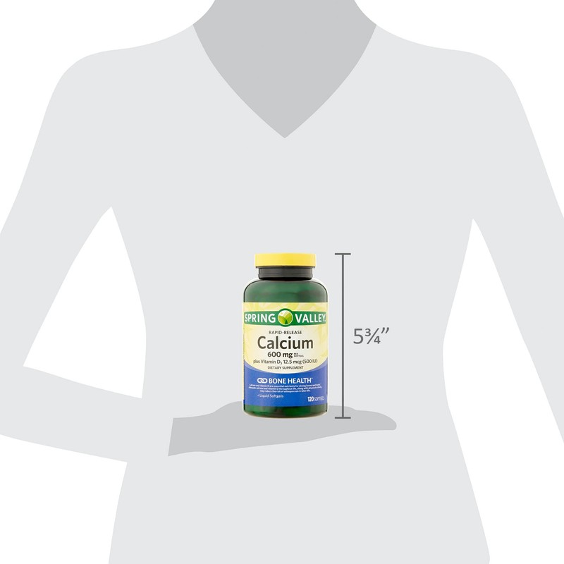Spring Valley Rapid-Release Calcium | Calcium 600 mg with Vitamin D3 Softgels | 600 mg 120 SoftGels Bundle with Lual's 45 Diabetes Decoded