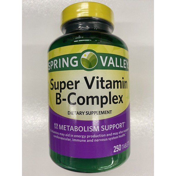 Spring Valley Super B Complex with Vitamin C & Folic Acid 250-CT SAME-DAY SHIP.