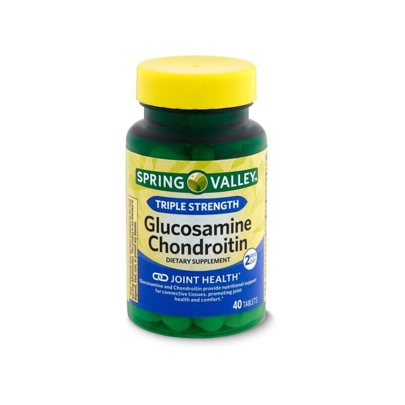 Spring Valley Triple Strength Glucosamine Chondroitin Dietary Supplement is designed to support joint health. Glucosamine and chondroitin provide nutritional support for connective tissues, promoting joint health and comfort. The suggested adult dosage is two tablets daily, preferably with a meal. These tablets are free from gluten, artificial colors, artificial flavors, sugars, and lactose. You can rest assured that Spring Valley Triple Strength Glucosamine Chondroitin Dietary Supplement is produced with strict quality guidelines and is backed by our quality guarantee.