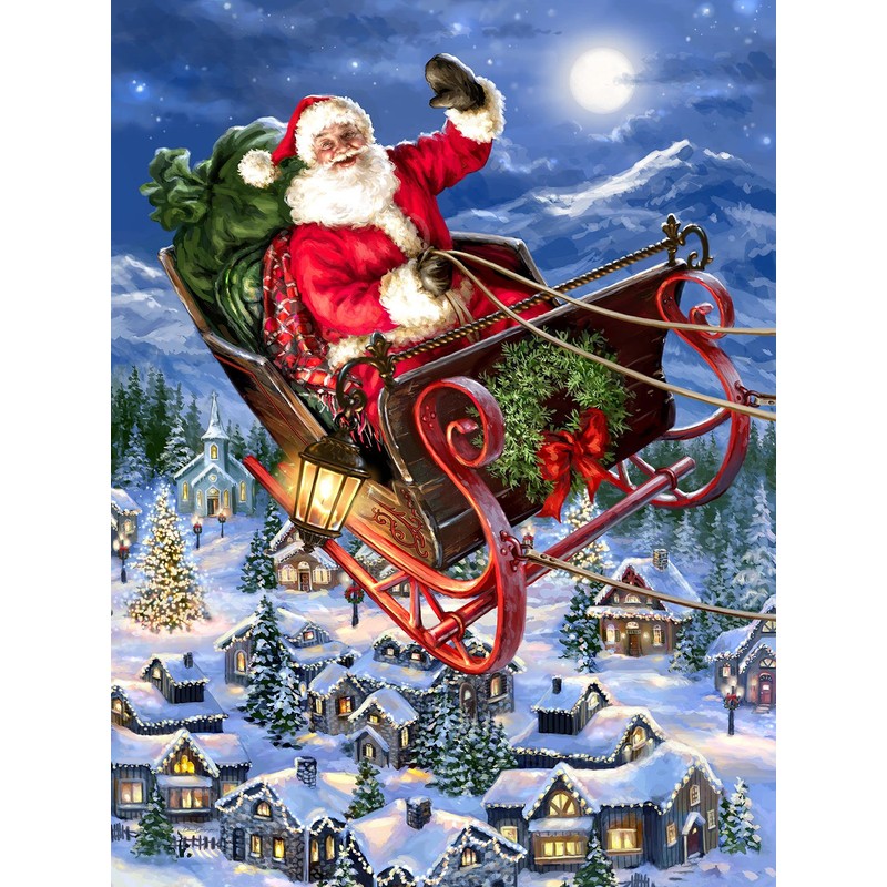 Springbok Delivering Christmas 500 Piece Jigsaw Puzzle - This Classic Scene of Santa in his Sleigh Will get You in The Holiday Spirit
