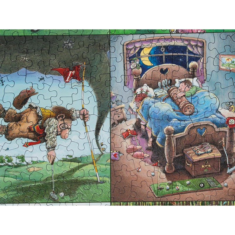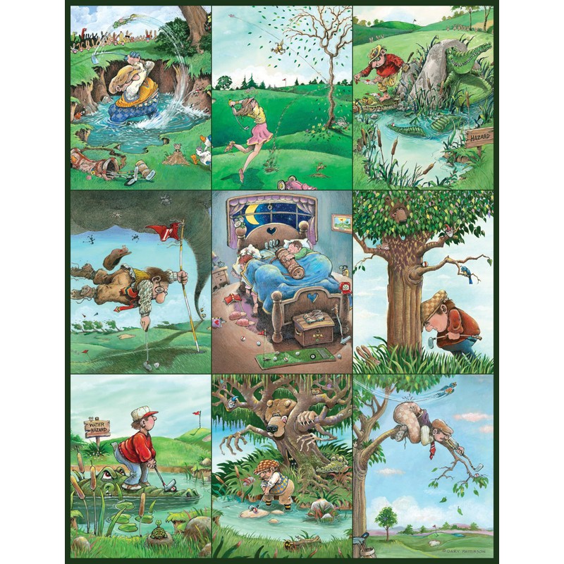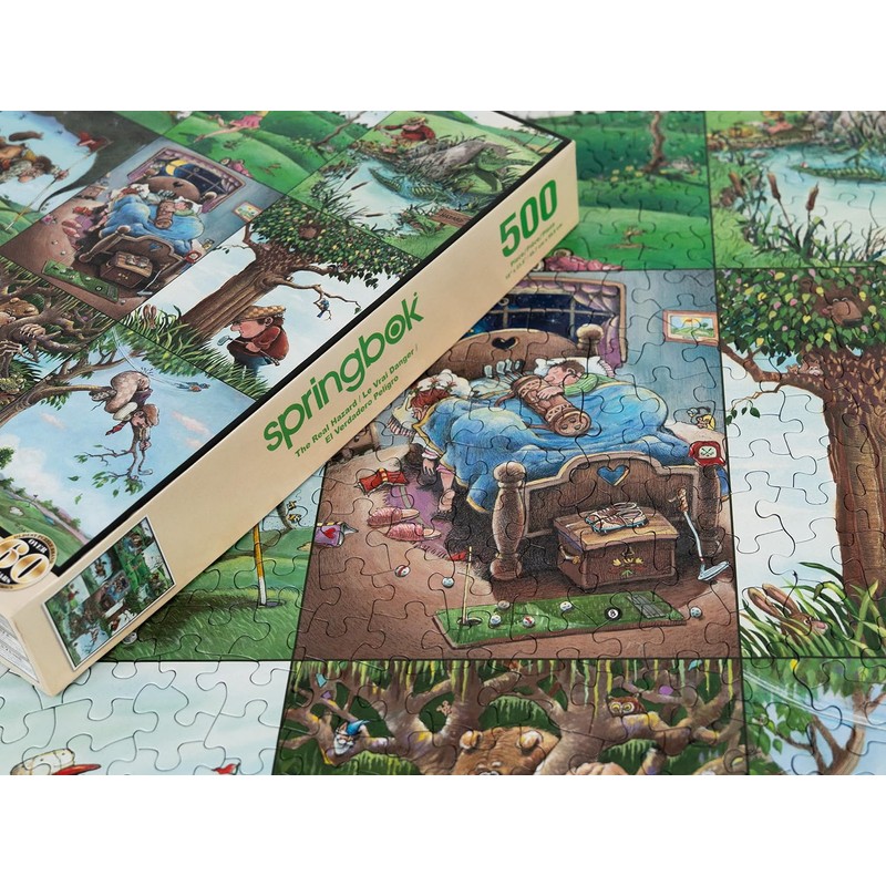 - Get ready for laughs on the links with The Real Hazard, a 500-piece jigsaw puzzle packed with golf-themed hilarity. Illustrated in a series of zany cartoon panels, this puzzle captures all the unexpected mishaps and outrageous moments golfers might face—from diving ducks to tree-bound swings and runaway golf carts. A perfect pick for humor-loving puzzlers and golf fans alike!