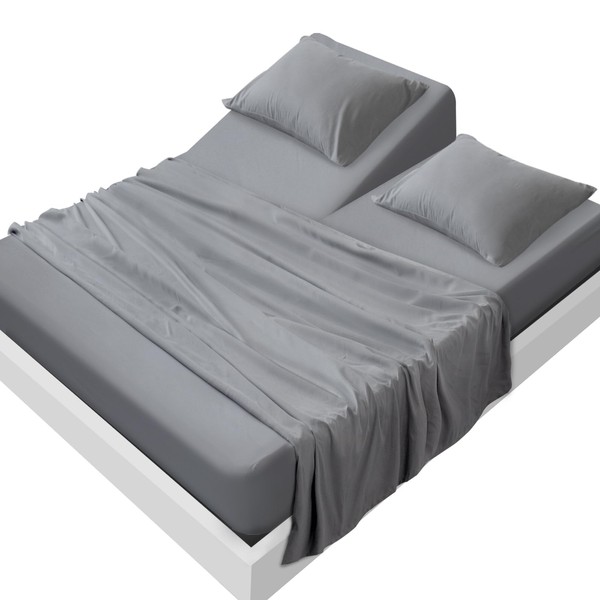 SPRINGSPIRIT Split Top King Sheets Sets for Adjustable Bed, 4 Piece Bed Sheets Set Deep Pockets, Extra Soft and Breathable Bedding Sheets, Grey